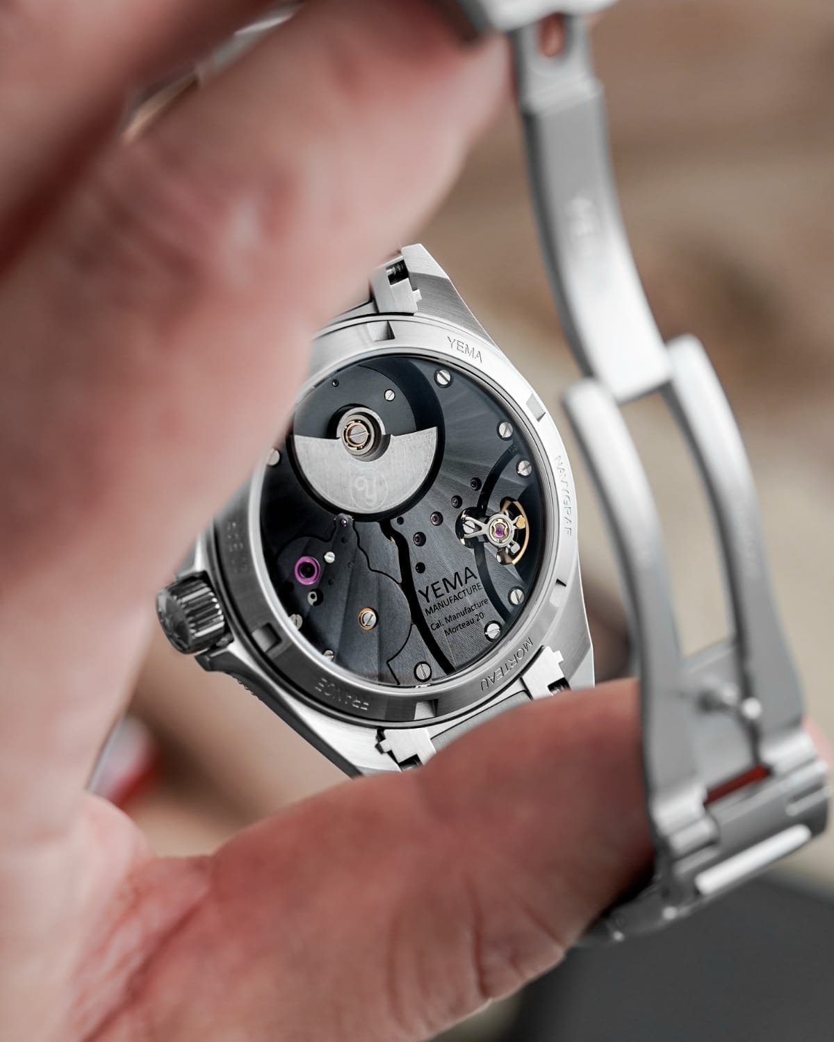 Il cuore del Madreperla è il calibro Manufacture Morteau 20, interamente progettato, prodotto e assemblato nei laboratori Yema di Morteau, in Francia. Questo movimento rappresenta un salto qualitativo per il marchio, che negli ultimi anni ha investito per entrare nel ristretto club delle vere manifatture verticalmente integrate.